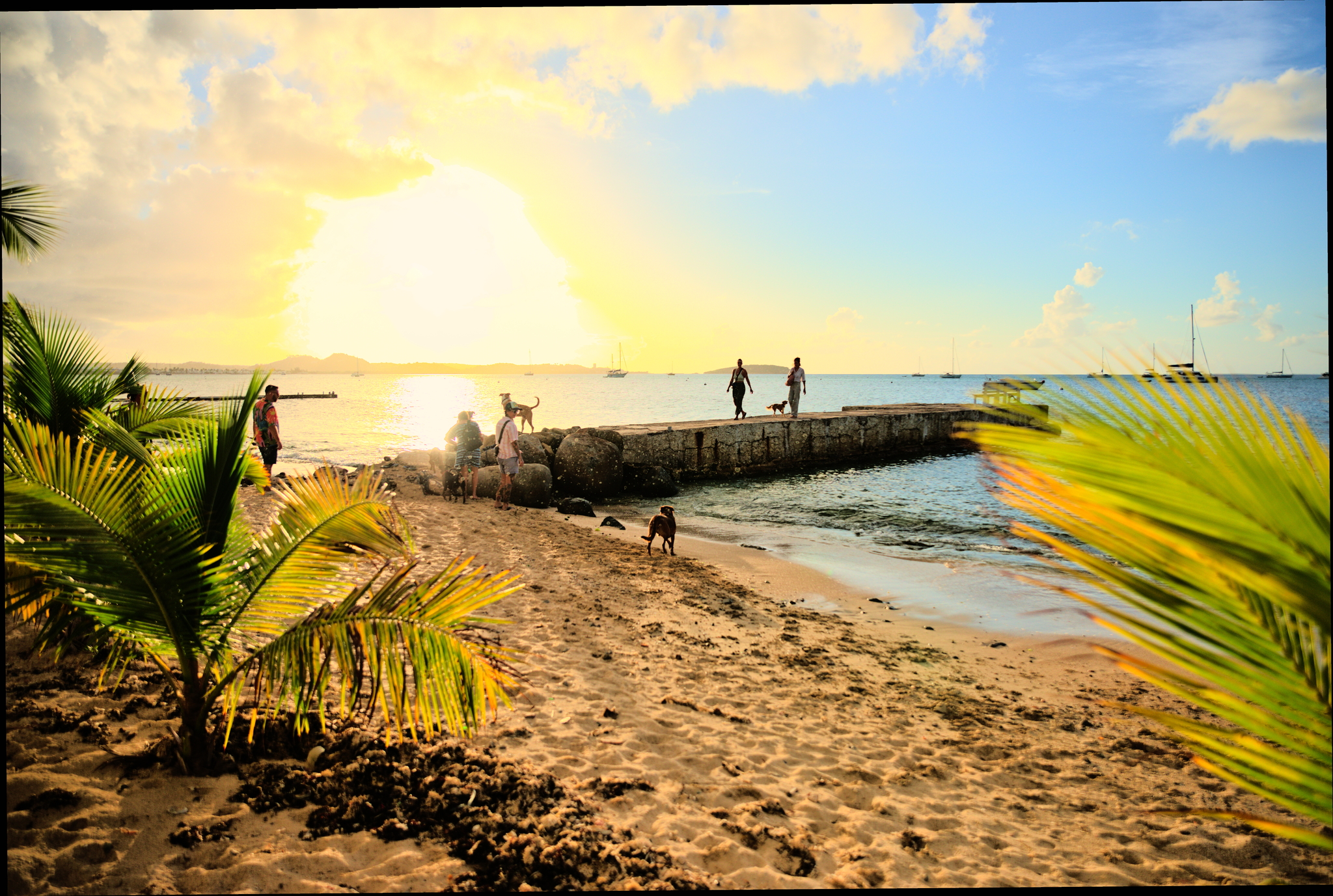 chiens au coucher du soleil